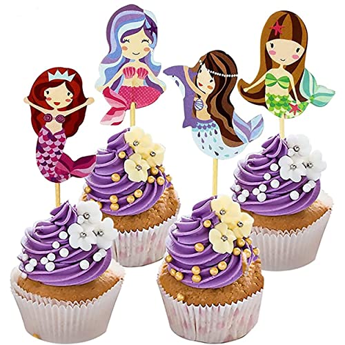 WIKI FIESTA Decorazione per Compleanno Sirena, Decorazione per cupcake a forma di sirena, decorazione per torta con sirena, decorazione per festa di compleanno per bambina, Mermaid cupcake (24 pezzi)