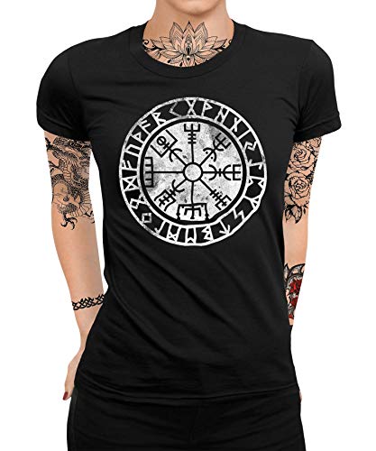 Wikinger Viking Valhalla Odin Thor Nordmann Wolf Nordische Mythologie Skal Norse - Maglietta da uomo e donna, Wikinger 31 Vegvisir Futhark Rune - Maglietta da donna, XXL