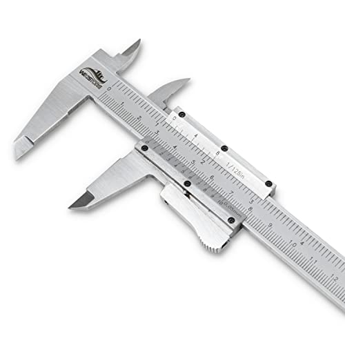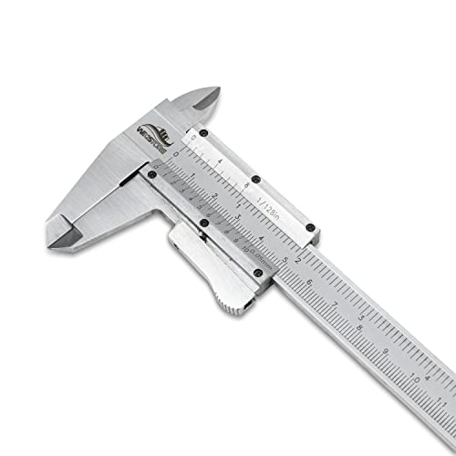 ACCURATO: Il nostro calibro a corsoio è preciso grazie all'intervallo di misurazione 0-150 mm con lettura 0,05 mm. Calibro 6 pollici con lettura 1/128.