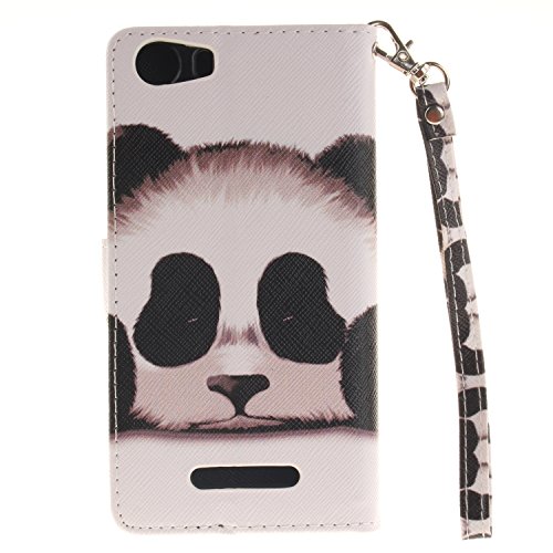 Wiko Lenny 2 Cover,Flip Cover Portafoglio Guscio Protettiva Custodia in Pelle per Wiko Lenny 2 Wallet Case Casi Caso Con carte di credito slot,Cozy Hut Wallet case Custodia a portafoglio per Wiko Lenny 2 - Custodia flip cover in Design panda con scompartimento tessere e funzione supporto in multicolore nero bianco - panda