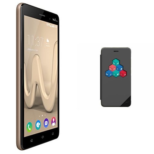Wiko Lenny 3 Smartphone da 16 GB, Dual SIM, Oro + Wicube Custodia con Finestra Interattiva e Stampa Tessuto per Wiko Lenny 3, Grigio