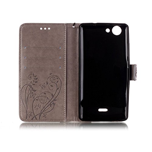 Wiko Pulp 4G Cover,Camiter Grigio Goffratura disegno della farfalla Cuoio Portafoglio Guscio Flip Case Cover Protettiva in pelle Casi Custodia per Wiko Pulp 4G Case Caso + panno di pulizia gratis