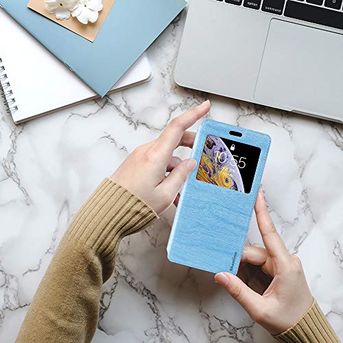 Wiko View 2 Plus - Custodia in pelle a grana di legno con porta carte e finestra, chiusura magnetica per Wiko View 2 Plus
