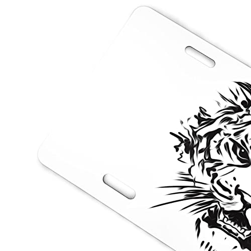 Wild Hand Drawn Tiger Targa Anteriore Auto Decorativa Novità Auto Targhetta Car Tag Vanity Gift Metallo Piastra in Alluminio per Donna/Uomo 12x6 Pollici Decorazione da Parete