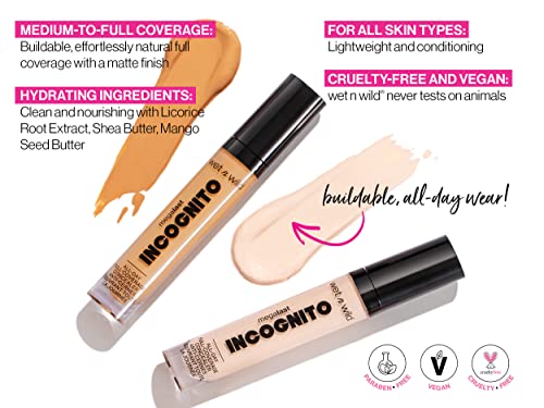 Wet n Wild Megalast Incognito Full-Coverage Concealer, Correttore Riccamente Pigmentato, Modulabile da Medium-to-Full, Finito Opaco, Formula Nutritiva e Idratante, con Burro di Karitè, Light Medium