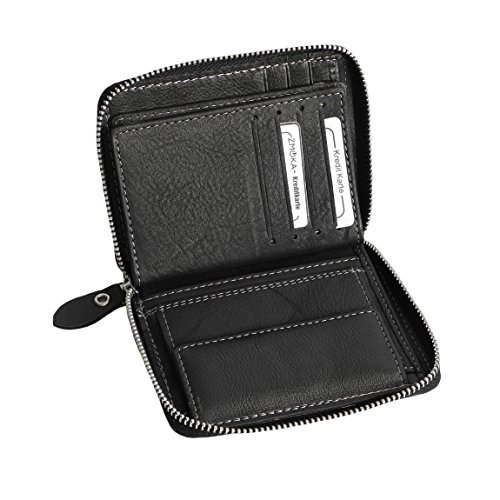 Portafoglio da uomo in vera pelle bovina, lavorazione di alta qualità e chiusura lampo circonferenziale.