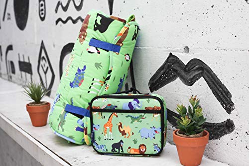 TRAVEL-FRIENDLY PROGETTAZIONE Ogni, lunch box compatto e leggero può tenere un buon dimensioni contenitore con un sacco di spazio per gli spuntini, utensili e scatole di succo. Le caratteristiche includono una tasca anteriore con zip per nascondere un dolce sorpresa o una nota divertente e un pratico interno perfetto tasca in rete per tovaglioli e utensili.
