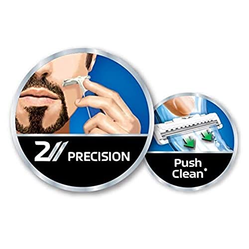 Il rasoio si distingue per la sua barra 'push clean', ideata per eliminare l'accumulo di peli tra le lame.