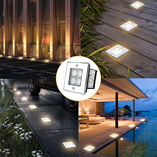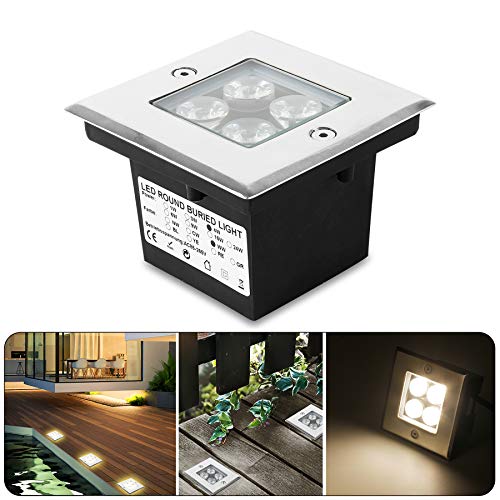 Wilktop Faretto Incasso a Terra, Faretto Incasso Led Faretto da Incasso 4W, Lampada da Esterno Quadrata IP67 LED Faretto da Incasso a Pavimento Lampade da Giardino Lampada per Esterno (Bianco Caldo)