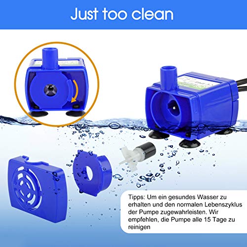 【Miglioramento dell'ambiente dell'acqua】: basta mettere la pompa dell'acqua in un serbatoio dell'acqua, l'acqua inizia a fluire e fornisce l'acqua vivida per gli esseri sottomarini. La pompa dell'acqua può aumentare facilmente l'ossigeno disciolto nell'acqua e far crescere i batteri nitrificanti, che è utile per mantenere l'acqua pulita.