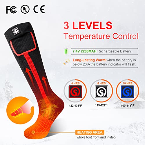 Calzini riscaldati di qualità premium: realizzati con una miscela premium di 55% CoolMax, 25% elastico di grado A più 20% elastan, i nostri calzini termici sono perfettamente traspiranti, confortevoli e assorbenti l'umidità. Fornendo calore continuo a tutto il piede e al collo del piede, i nostri calzini elettrici sono realizzati con elementi riscaldanti a infrarossi lontani aggiornati per un maggiore risparmio energetico, che assicurano che i piedi non si congelino divertendosi.