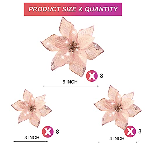 WILLBOND Fiori Poinsettia Natale Glitter Fiori Artificiali Glitterati per Matrimoni Ornamenti di Capodanno per Albero di Natale (Rose Gold, 24)