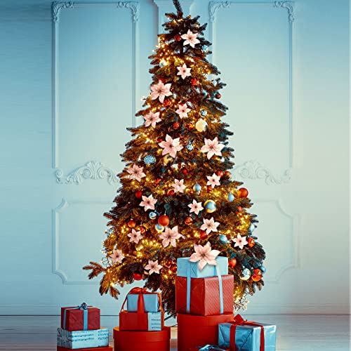 Materiale: gli ornamenti di fiori di Natale sono realizzati in materiale flessibile e infrangibile, possono essere applicati ovunque tu voglia, ricoperti di glitter, che rendono l'albero più attraente e aggiungono più atmosfera di vacanza