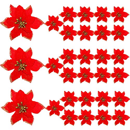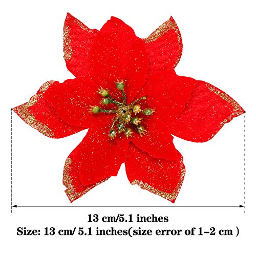 WILLBOND 30 Pezzi Glitter Ornamenti per Alberi di Natale Matrimonio Artificiale Fiori Poinsezia di Natale Fiori per Natale Fiore Alberi Ghirlande Corona Decorazione Ornamento (Rosso Natale)