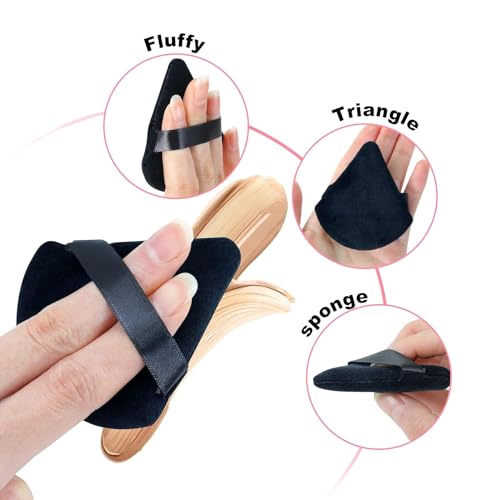 Willight 6 Pezzi Piumini da Cipria, Soffio Trucco Triangolo Del Viso, Spugnetta Cipria Powder, Riutilizzabile Soffio di velour, per Fondotinta, Fard, Strumenti per il Trucco Wet And Dry (Nero)