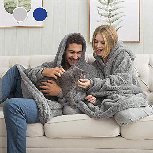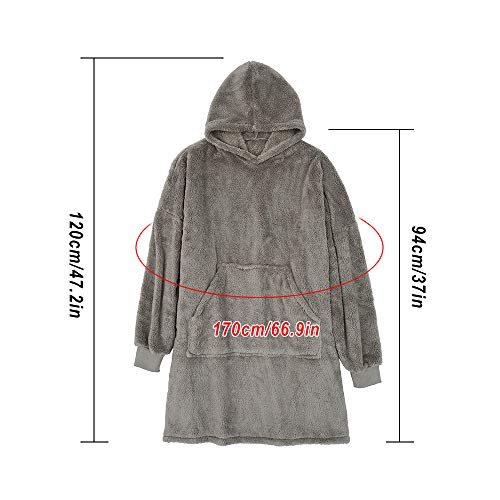 Willkey Coperta Felpa Gigantesca Coperta Felpa Oversize con Cappuccio e Tasca Grand Felpa Plaid Gigante Pigiama per Uomo e Donna (GRIGIO, 94CM)