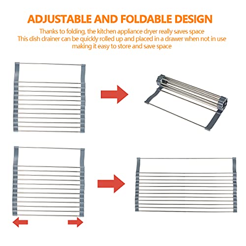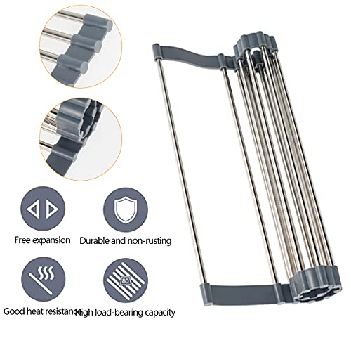 【SCOLAPIATTI RETTRATILE】La scolapiatti pieghevole può estensibile da 33 x 32cm a 58 x 32cm, si adatta a lavabo da cucina universale, che è semplice per organizer e stoccaggio