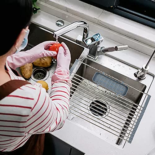 【MULTIUSO】Utilizzato come uno scolapiatti sopra lavello, una griglia perfetta per asciugare i piatti, anche una piattaforma per lavare frutta e verdura, conveniente e pulito per cucina