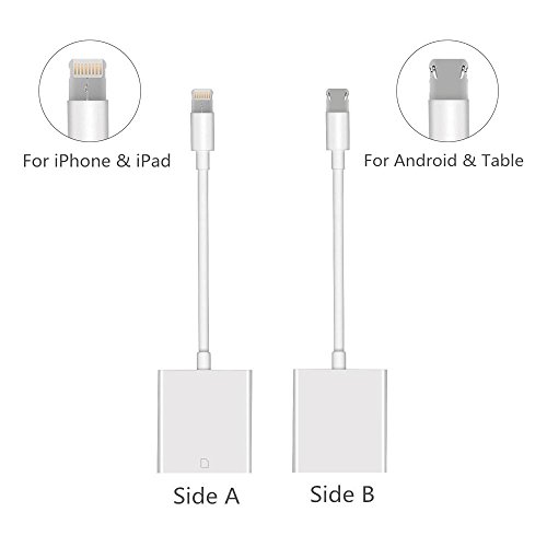 Willmall SD Card Reader, camera, 2 in 1 iPhone e Android micro USB del connettore Hunter Trail Game camera illuminazione Viewer lettore di schede SD per iPhone 7 6S 6 Plus 5S 5 iPad Mini 4, no app necessari