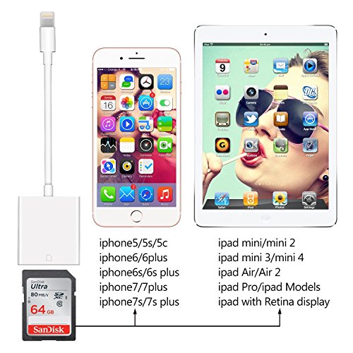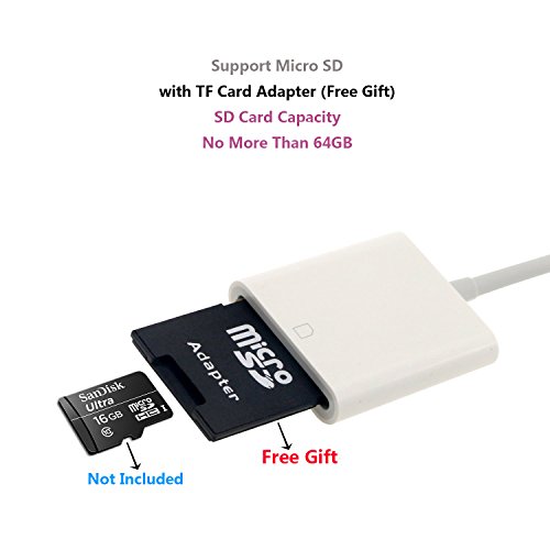 nessuna app necessaria, scaricare e visualizzare foto e video dalla scheda SD direttamente al tuo iPhone e iPad. Supporta SD card capacità inferiore ai 64 GB. Scheda SD non è inclusa.