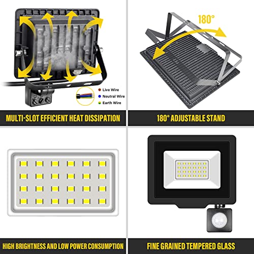 Eccellente Dissipazione del Calore: queste proiettore led esterno sono progettate con un dissipatore di calore tipo a finitura, il che significa che agisce come un radiatore per dissipare il calore, si estende alla durata della vita della luce di lavoro