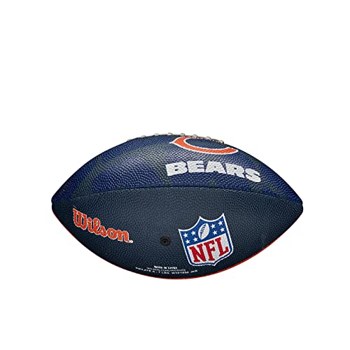 Contenuto della confezione: 1x Wilson Pallone da calcio americano, NFL JR TEAM LOGO, Chicago Bears, Dimensione giovanile, Materiale: gomma, Colore: Blu/Arancione, WTF1534XBCH