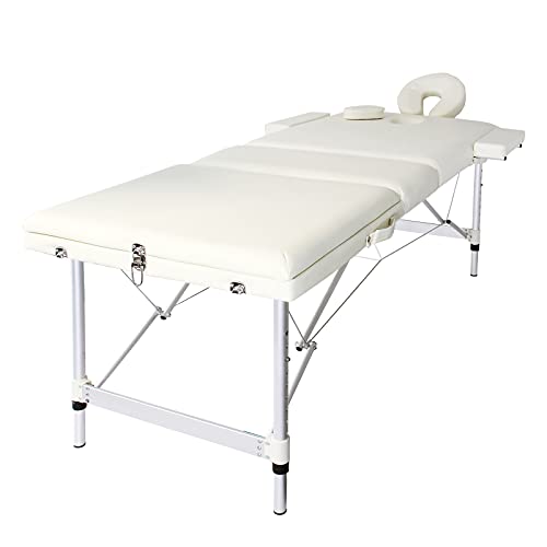 Wiltec Lettino da Massaggio Bianco in Alluminio con poggiatesta Multifunzione Pieghevole Altezza Regolabile