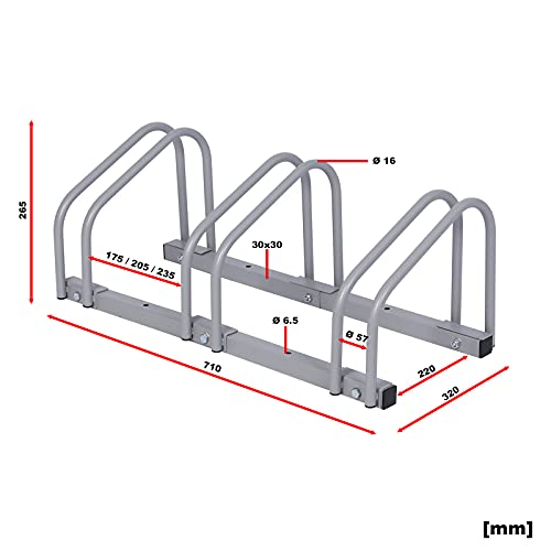 Wiltec Rastrelliera per 3 Biciclette 70x33x27 cm in Metallo zincato