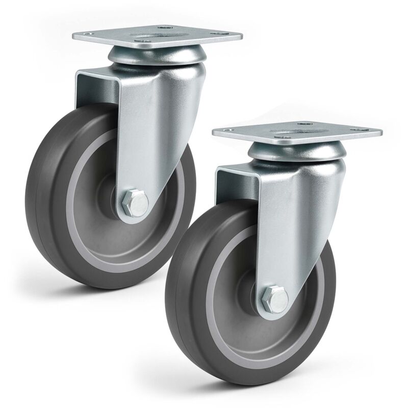 Montaggio semplice e rapido - - Le rotelle possono essere installate facilmente sotto qualsiasi dispositivo di trasporto, utilizzando la piastra di montaggio preforata [Manovrabilità ottimale] - Il set garantisce cambi di direzione fluidi e senza sforzo, migliorando l'efficienza nel movimento di carichi pesanti [Capacità di carico] - Ogni ruota supporta un peso massimo di 100 kg, ideale per trasportare oggetti pesanti con facilità e sicurezza [Funzionamento silenzioso] - Buona capacità di ammortizzamento ideale per carichi fragili [Materiali di alta qualità] - Realizzata con corpo in polipropilene e pneumatico in gomma termoplastica anti-traccia, offre durata e non danneggia il pavimento Con il set di due ruote piroettanti è possibile trasportare facilmente carichi pesanti. Le rotelle possono essere montate sotto uno strumento da trasporto per spostare facilmente il carico da un luogo all'altro. Durante lo spostamento si mantiene il controllo della direzione di marcia e si può persino