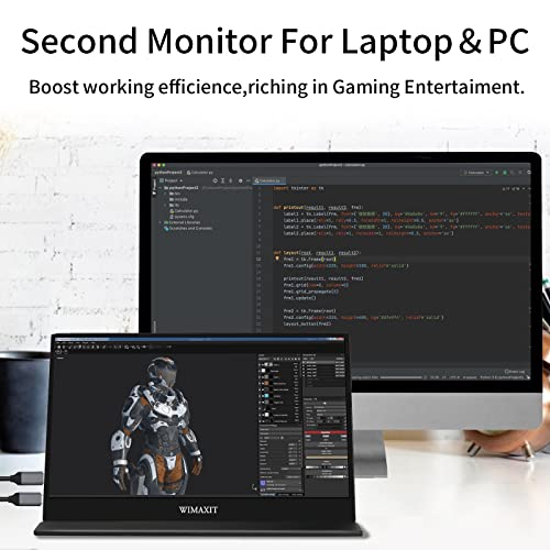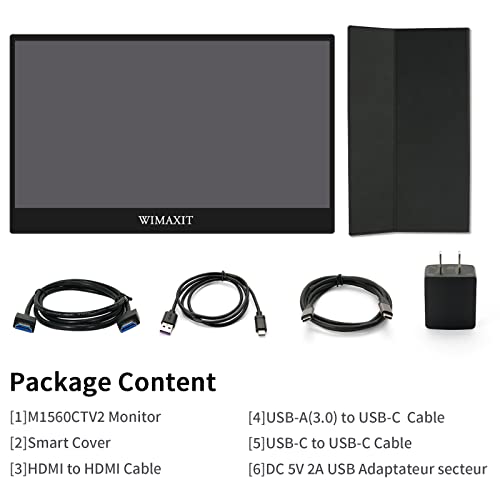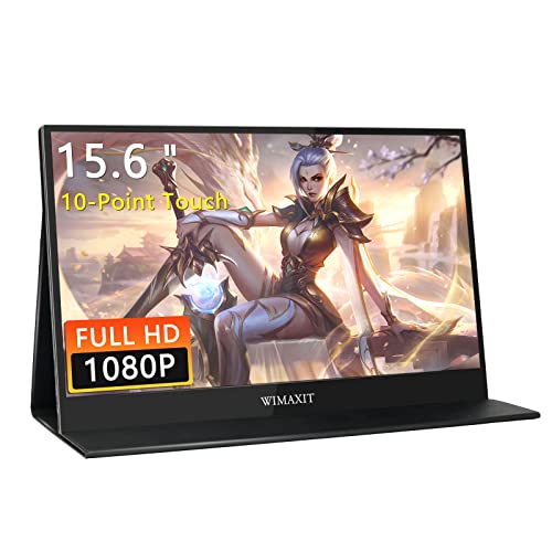 WIMAXIT USB C Monitor Touch portatile, 15.6 Pollici Full HD 1080p/60Hz HDMI Type-C Multi-Interfacce with Stabile Built-in Cover, Speakers VESA Mount for Laptop Gaming Working Extension Display