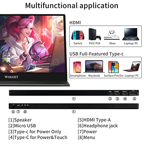 【 SCELTA DI PIÙ】 Il monitor touch WIMAXIT è altamente compatibile e adatto per PC, cellulare, tablet, laptop, PS3/4, Raspberry Pi 4/3/2/1/3B +, XBOX ONE, Wii, Nintendo Switch, ecc. È possibile utilizzare questo display esterno per leggere, lavorare e guardare film, ecc. Dotato di cavo USB-C a C e C ad A, connettore QC3.0 e cavo HDMI, facile da usare. Garanzia di un anno su questo articolo. Se avete domande, si prega di contatt