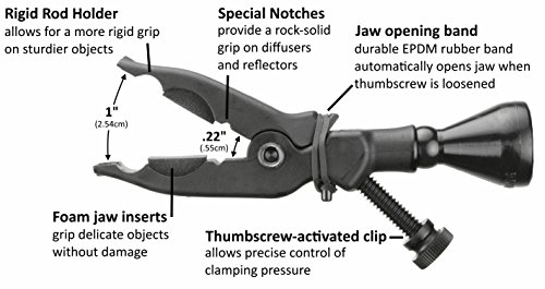 La clip notevolmente riprogettata consente una presa sicura di riflettori, diffusori e piccoli oggetti