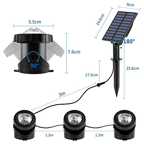 【Luci solari subacqueeee】: la distanza tra il pannello solare e la prima luce è di circa 3 metri e la lunghezza tra le singole luci circa 1,2 metri. Questa luce subacquea richiede una lunga pressione dell'interruttore per 3 secondi per accendere e spegnere la luce. Si prega di premere l'anello luminoso saldamente per evitare che l'acqua penetri all'interno.