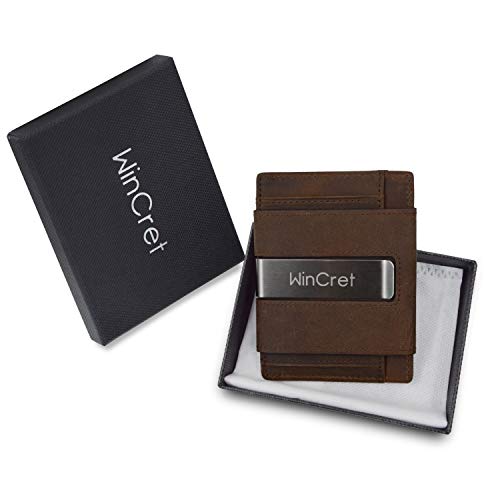WinCret Portafoglio Uomo Sottile con Fermasoldi e Portamonete - Porta Carte di Credito RFID innovativo Mini Clip Portafoglio da uomo funzionale in vera pelle - Confezione regalo