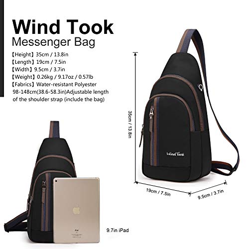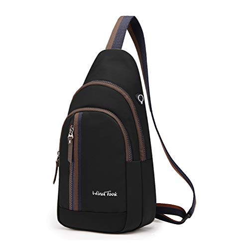 Wind Took borsa tracolla uomo zaino monospalla tracolla uomo marsupio a tracolla zaino a tracolla casual per sportivo viaggio ciclismo nero