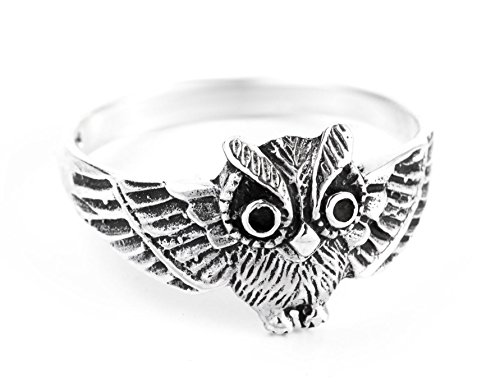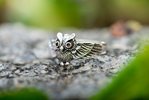 Windalf, anello da donna in argento Sterling 925 con gufo, 10 mm e Argento, 52 (16.6), colore: argento, cod. r352-52