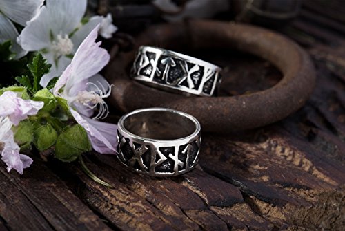 Windalf Vikings Anello FUTHARK da 9 mm, anello per partner vichingo, Asatru, in argento Sterling 925, tessuto