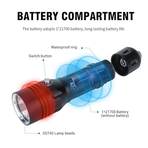 【Ampia applicazione】 Torcia subacquea professionale per appassionati di immersioni subacquee e snorkeling. Non solo una torcia subacquea, ma anche uno strumento di illuminazione per la vita quotidiana! Ideale per campeggio, escursionismo, viaggi, pesca, caccia, passeggiate, alpinismo, avventura, emergenza e altro ancora.