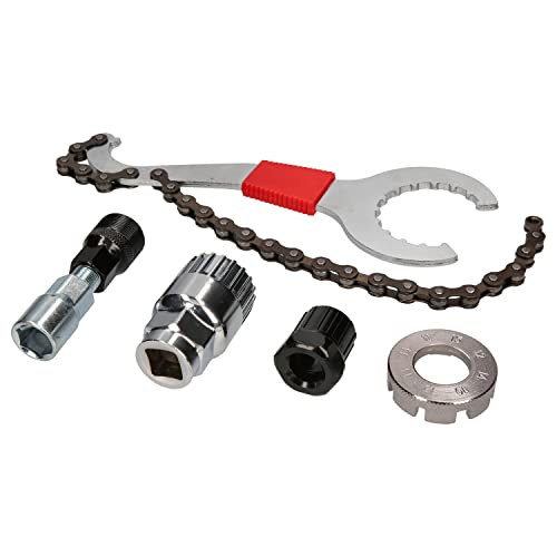 Estrattore per cassette e chiave per movimento centrale: l'estrattore per cassette è realizzato in lega di acciaio per utensili trattato termicamente e spesso può essere utilizzato senza rimuovere i perni e i controdadi. Le cassette compatibili sono Shimano, SRAM, SunRace, SunTour e Chris King. È adatta a movimenti centrali fino a una lunghezza dell'asse di 126 mm ed è dotata di un'apertura quadrata da 1/2' per il cricchetto.