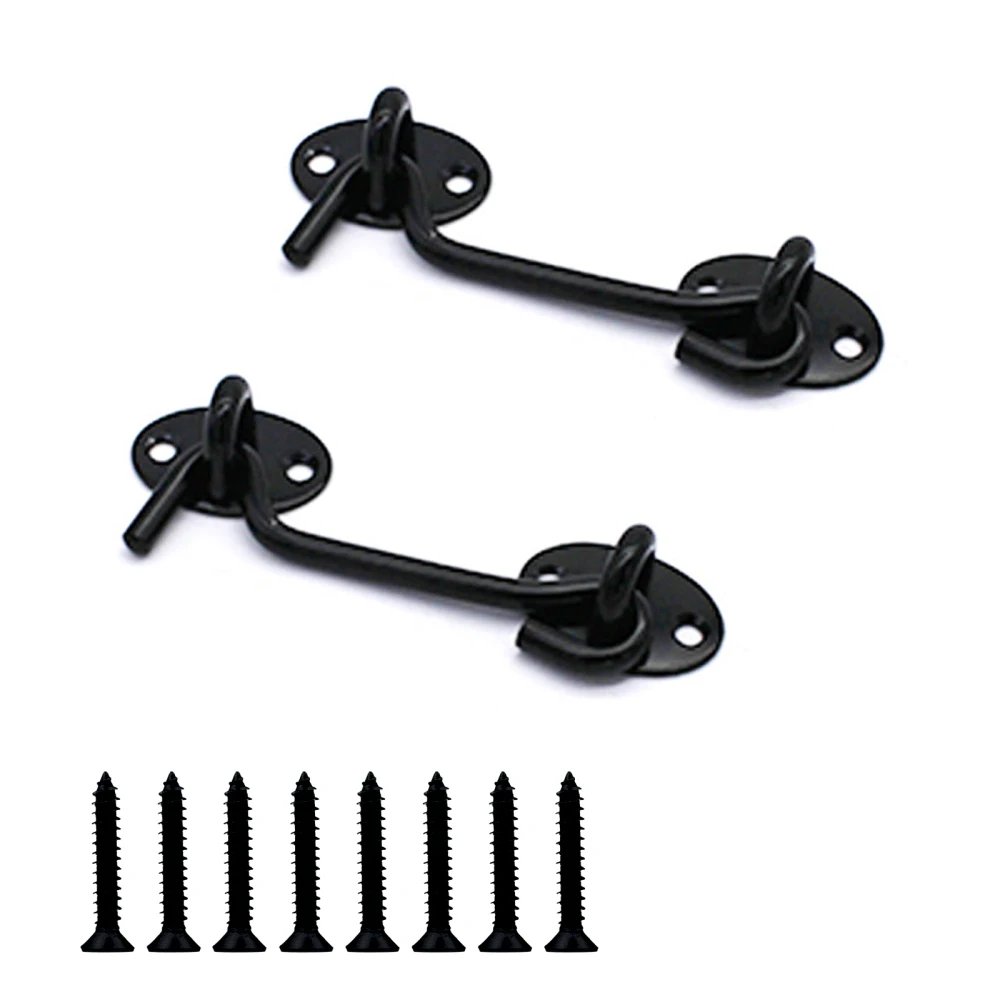 Window Lock Cabin Hook Eye Latch Metal With Screws 2pcs Door Stainless Steel Black Latches