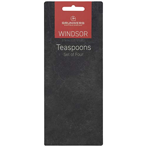 Windsor Carded 4TESWDR Set di 4 cucchiaini da tè in Confezione Nera e Rossa in Acciaio Inox 18/0 - lucidato, a Quadretti, Inossidabile