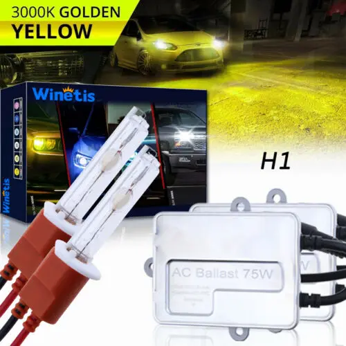 75W Winetis H1 Hid Hid Xenon Conversion Kit High Beam Headlight Bulb 3000K Amber