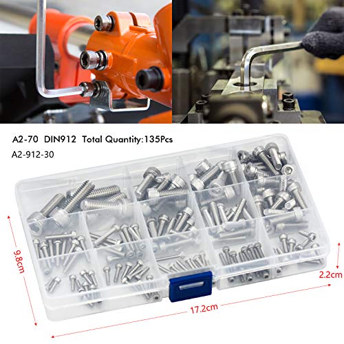 Kit di Bulloni e Dadi: 135 pezzi viti includono M2.5, M3, M4, M5, M6, M8. Ci sono 14 diverse dimensioni in totale in un set per soddisfare le diverse esigenze.