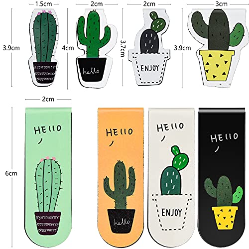 Winfred Set di 8 segnalibri magnetici per pagina, segnalibri assortiti, durevoli, per studenti, insegnanti, lettura, simpatici, stile tropicale cactus, mixed color