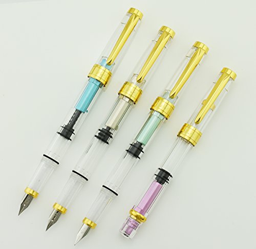 4 PZ Wing Sung 3008 Pistone Penna Stilografica Fine Pennino Trasparente Diversity Colore Oro Trim Set