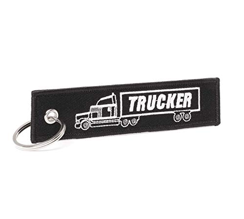 Colore: nero con scritta bianca ricamata - Lato 1: scritta TRUCKER / motivo lato 2: camion con scritta - vedi immagini del prodotto del portachiavi
