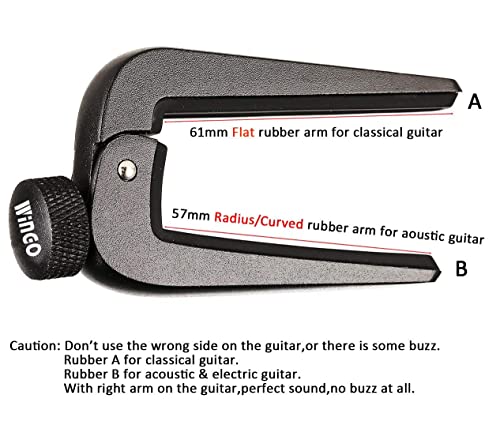 WINGO Universal Capotasto Chitarra per 6 o 12 corde Chitarra Acustica Elettrica Classica Bass Ukulele Violino, Nero