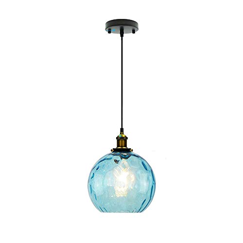 Wings of wind - Moderna Lampada a Sospensione Design Industriale E27 Glass Lamp Shade Illuminazione a soffitto Blu (20cm)