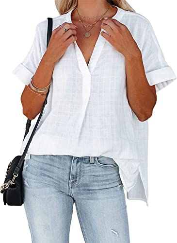 WINKEEY Camicie estive da Donna Eleganti Bluse da Donna con Scollo a V a Maniche Corte Top, Bianco L