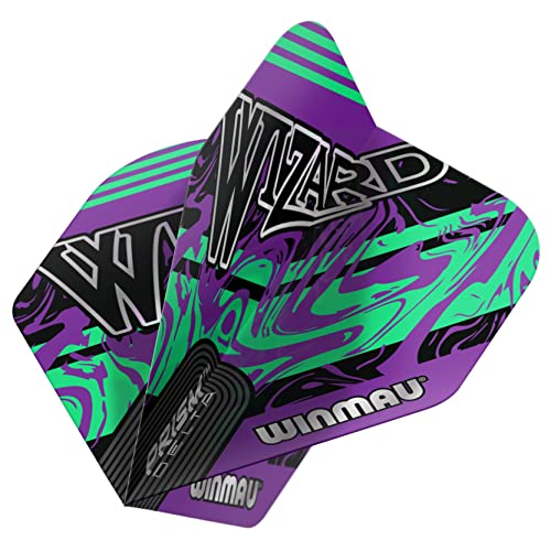 WINMAU Prism Delta Wizard Viola e Verde Dart Voli - 1 Set per Confezione (3 voli in Totale)